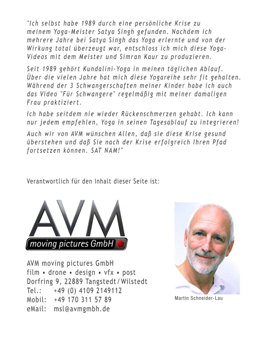 Da sitze ich und die Erinnerungen an unsere gemeinsame Zeit in den 90er Jahren überfluten mich. Die Arbeit an unseren drei Yogafilmen war so viel mehr als ein Projekt; es war eine Reise der Liebe, der Hingabe und des gemeinsamen Wirkens. Ich sehe Dich noch vor mir, wie Du mit dieser unglaublichen Präsenz und dieser tiefen, sanften Stimme vor der Kamera gesessen hast und „Entspannung der 7 Chakren“ und „Die Wirbelsäule“ zu einem Erlebnis machtest, das so vielen Menschen Türen zu ihrem inneren Wesen geöffnet hat. Deine Lehren waren nie nur Theorie, sie waren gelebte Weisheit. Und dann der Film mit Simran, „Für Schwangere“ – ein Werk voller Zärtlichkeit und Kraft, das so wunderbar Eure harmonische Verbindung spiegelte. Gemeinsam haben wir diese Schätze erschaffen und in die Welt getragen. Dieser Erfolg, von dem Du sprichst, war immer Dein Erfolg, war die Ausstrahlung Deines reinen Wesens.